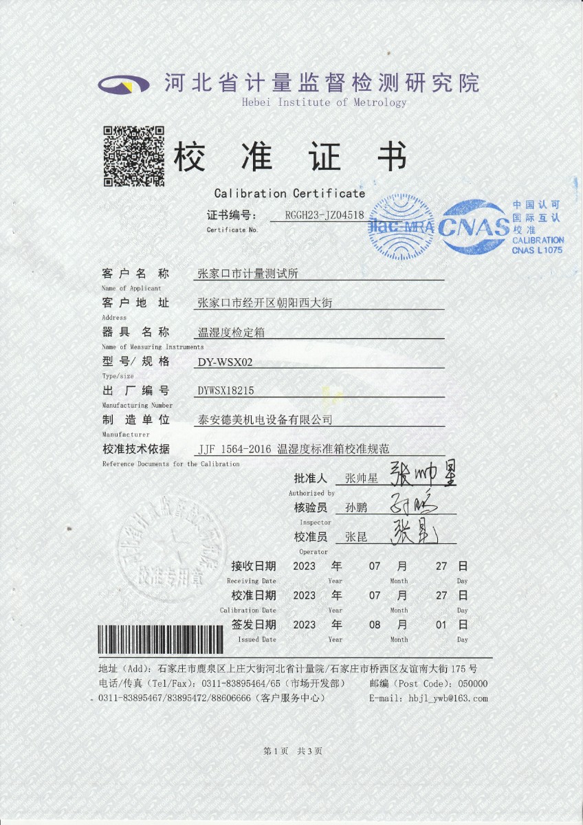 張家口市計量測試所-溫濕度檢定箱 2023-8-12 本文被閱讀 16813 次