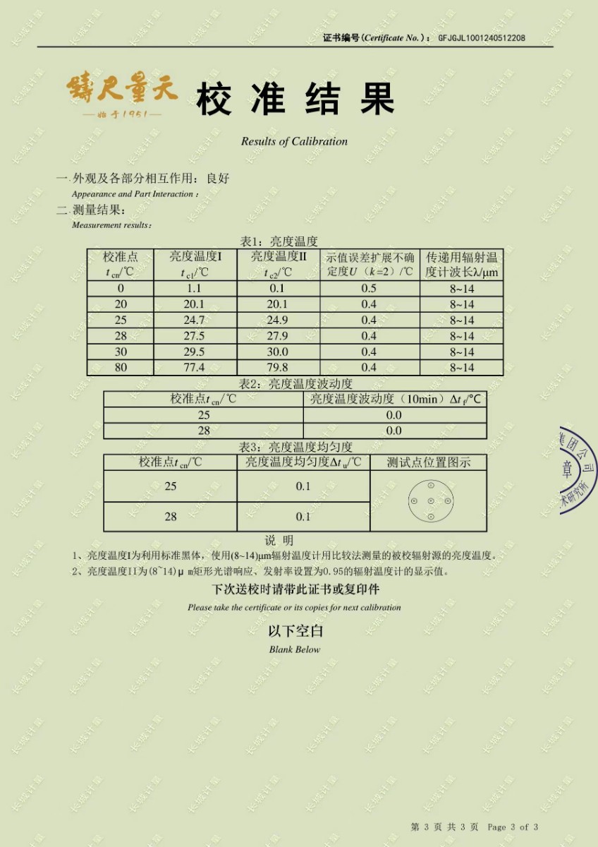 面源黑體爐校準(zhǔn)證書 2024-5-31 本文被閱讀 7569 次