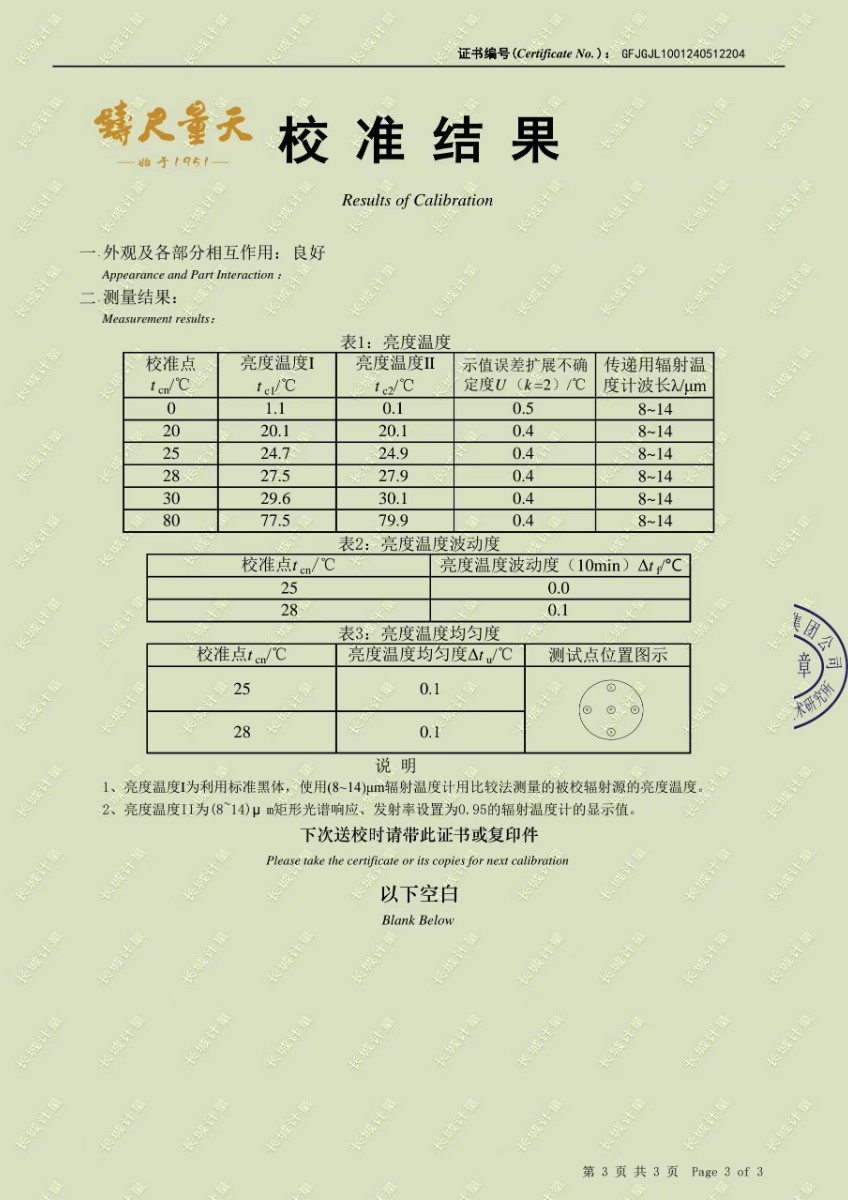 面源黑體爐校準(zhǔn)證書 2024-5-31 本文被閱讀 7724 次