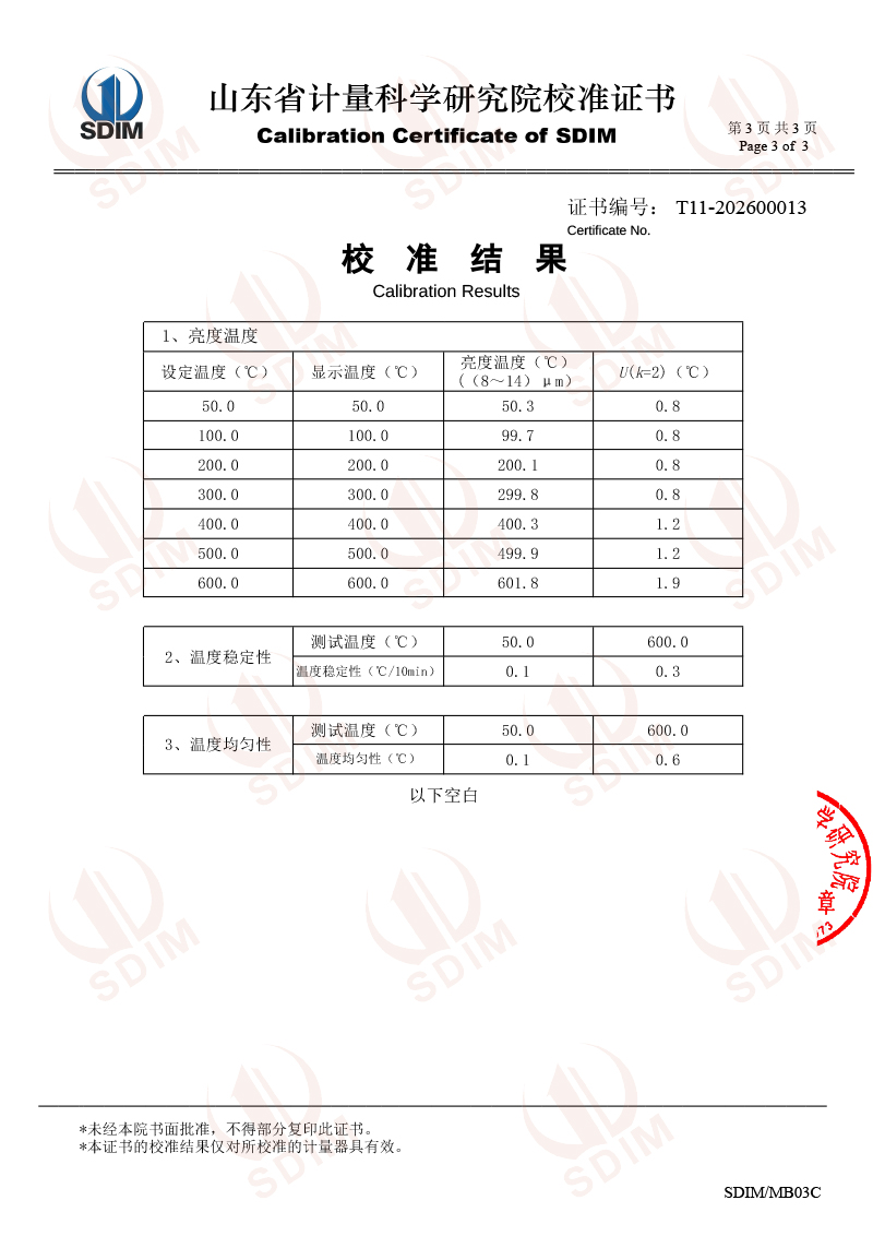 中溫腔式黑體校準(zhǔn)證書 2026-1-8 本文被閱讀 1235 次