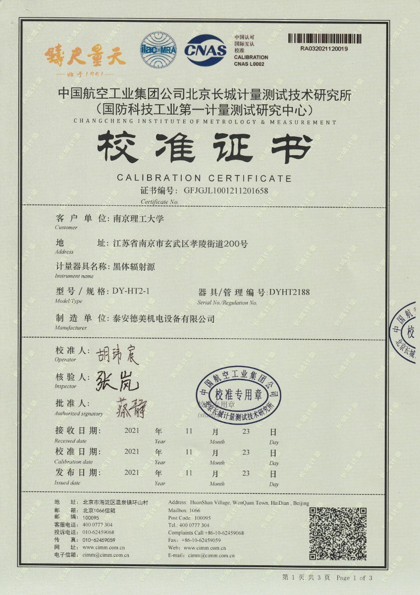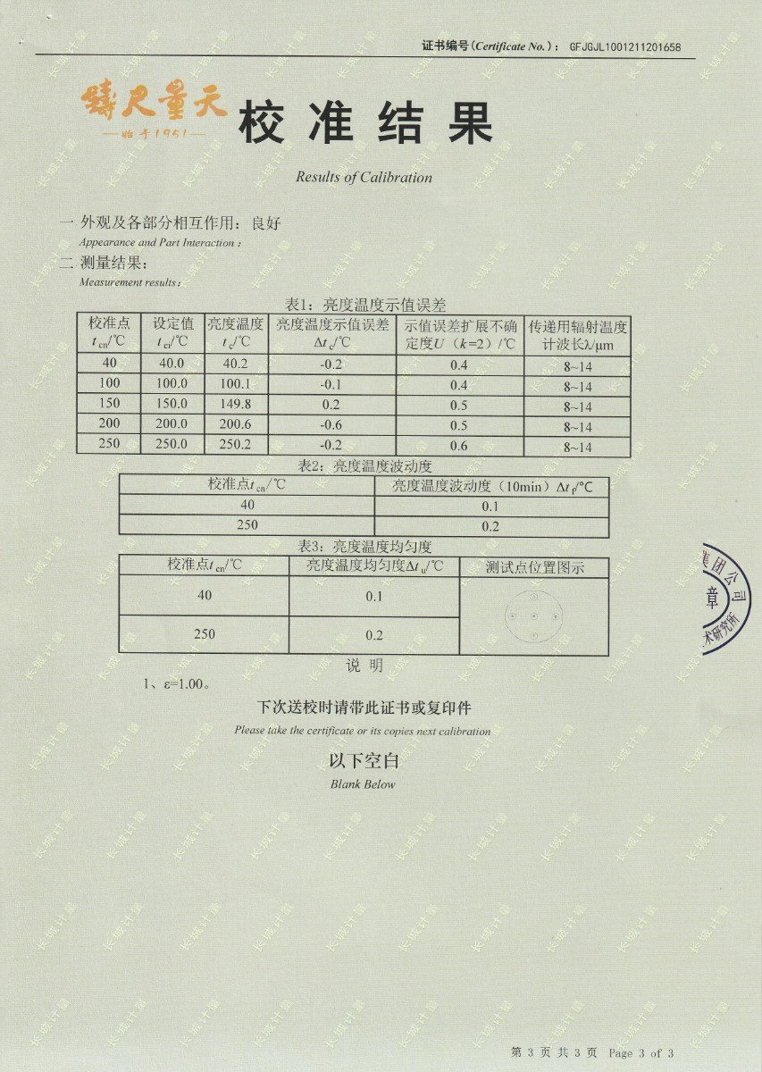 | 上一條:南京理工大學(xué)-黑體輻射源校準(zhǔn)證書-30-20℃ | 下一條:廉金屬熱電偶檢定爐-校準(zhǔn)證書 |
