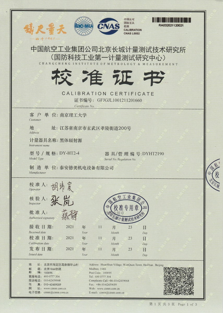 | 上一條:南京理工大學(xué)-黑體輻射源校準(zhǔn)證書180-500℃ | 下一條:廉金屬熱電偶檢定爐-校準(zhǔn)證書 |